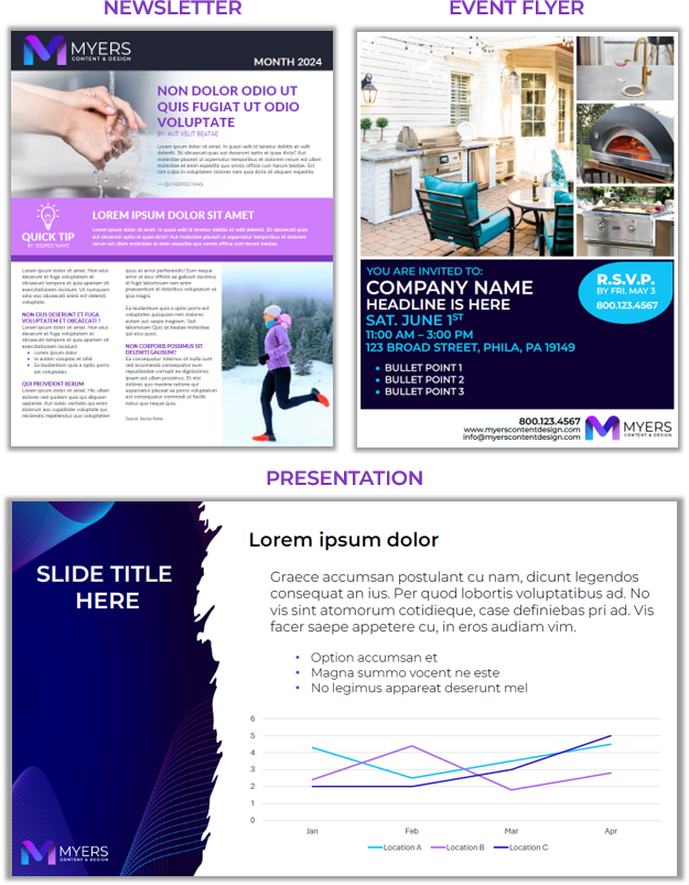 Myers Content & Design offers a unique blend of operational expertise and creative design to address a variety of business needs.